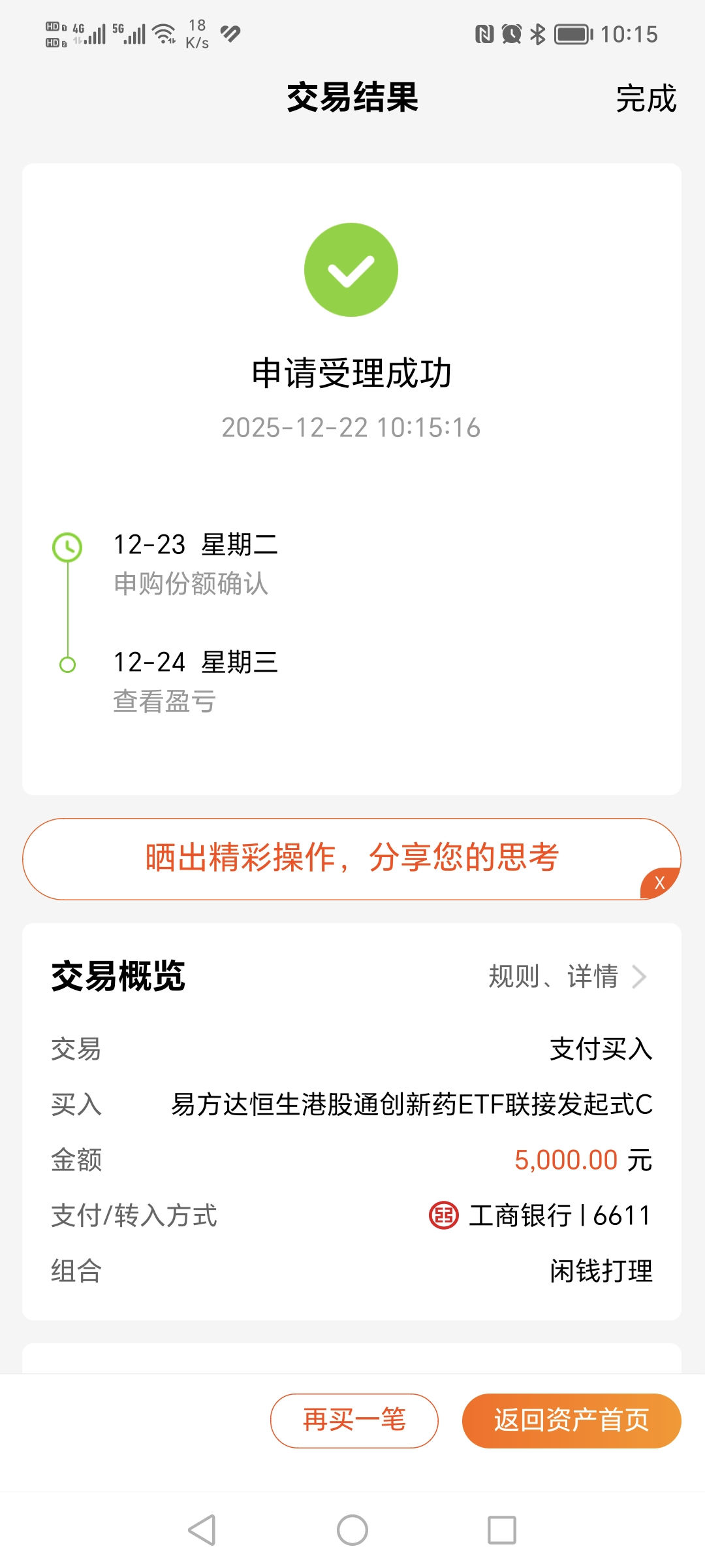 周末消息面偏暖,今天市场感受到这个信号,成交量也开始放大,说明资金在流入了。上周我不是看好可控核聚变吗?现在行业指数继续创下反弹新高,主流题材就是猛!今天加仓永赢制造升级智选C 1000元,这个基金是当前国内唯一跟踪可控核聚变题材的品种,随着人工智能数据中心的高速发展,核电商业落地成长性非常高。最关键的是行业指数创新高,永赢制造升级还未全面复苏,这不就有一个预期差的机会吗?这就好比国际金价创了历史新高,国内金价跟随的概率很大。对了,永赢制造升级智选C和永赢高端制造混合C是同一人掌舵,高端制造近期受益CPO业绩大增表现也是不错的。我认为当下市场依然围绕科技题材做文章,科技才是第一生产力这句话不假,主力还在看好,为啥不跟上它的节奏呢?